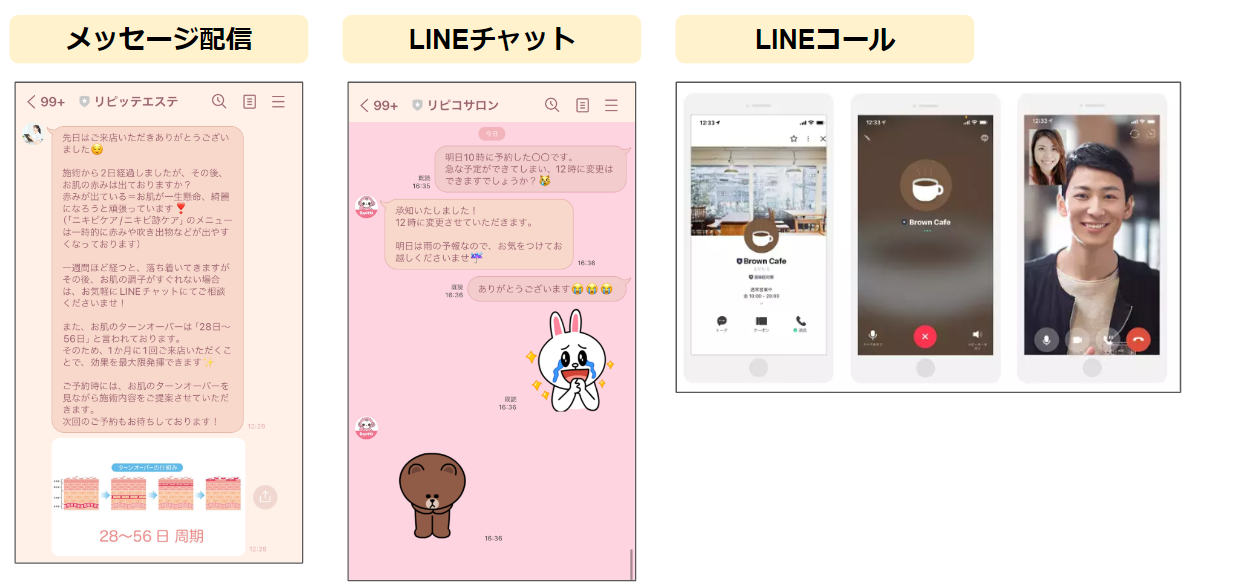 LINEコールは、ユーザーがLINE上から店舗やサロンの「LINE公式アカウント」と無料通話ができる機能です。ビデオ通話も可能であり、通話料はサロン側やユーザー側のいずれにもかかりません。ただし、サロン側からの発信はできません。