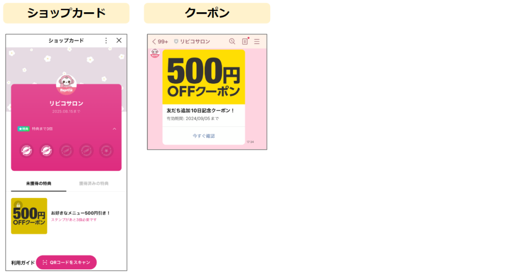 クーポンは、ショップカードと同様LINEアプリ内で発行されるデジタルクーポンです。