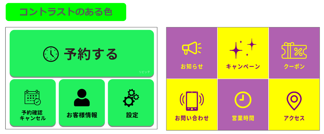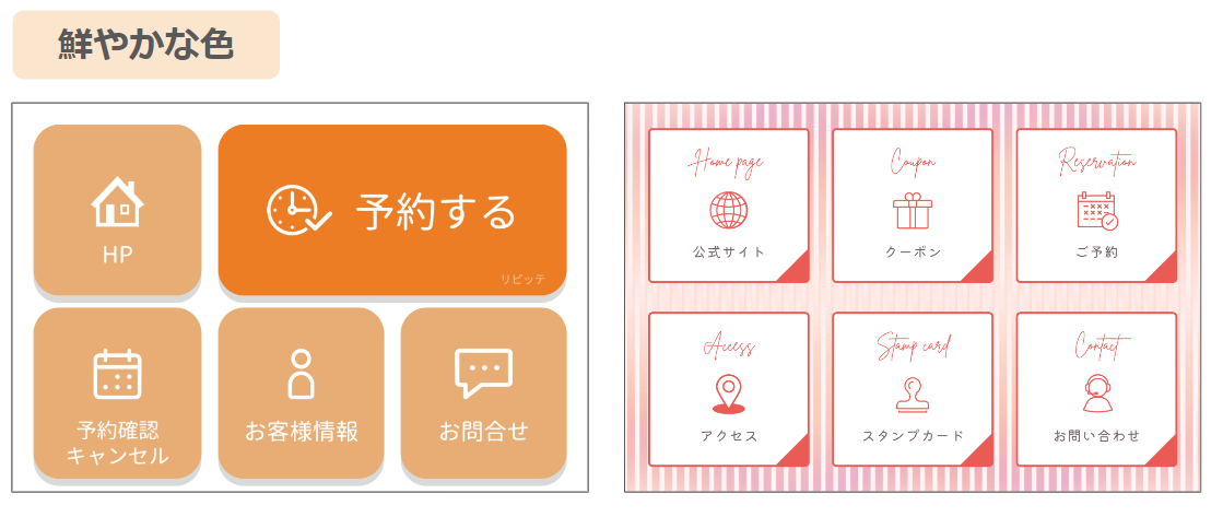 以下の組み合わせは、リッチメニューの視認性を高め、顧客の目を引く効果があります。
