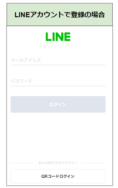 個人のLINEアカウント(プライベートでご利用中のLINE)にログインする情報(メールアドレス・パスワード)を入力、もしくはQRコードを読み込んで個人アカウントと連携させます。