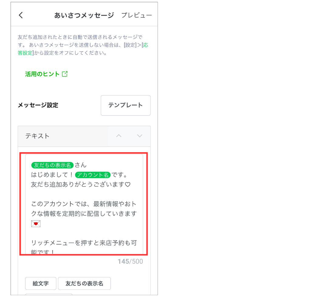 ⑤あいさつメッセージの設定方法