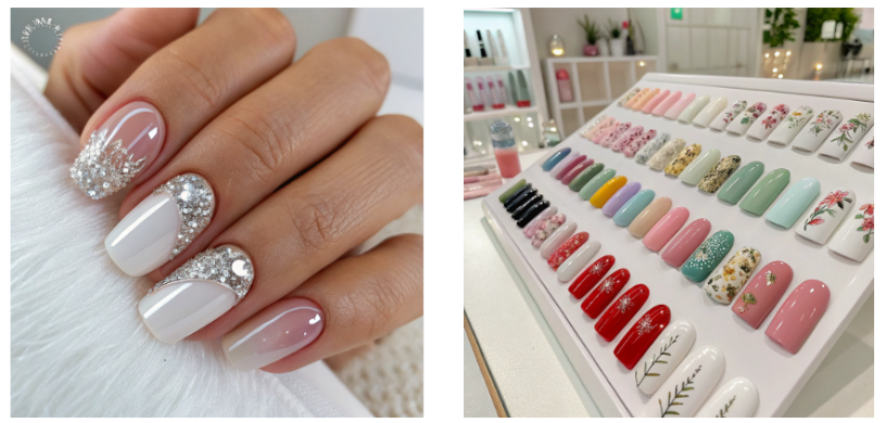 画像: 流行のネイルデザインやパステルカラーを使ったサンプル写真。