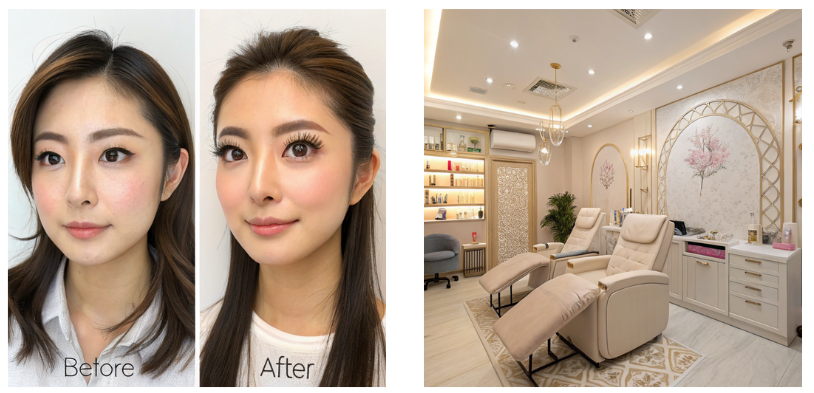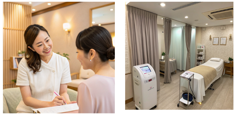 画像: 美肌の仕上がりイメージや、施術スペースの清潔感が伝わる写真。
