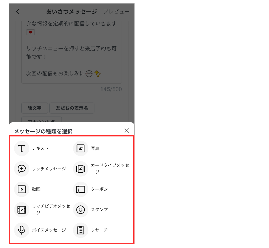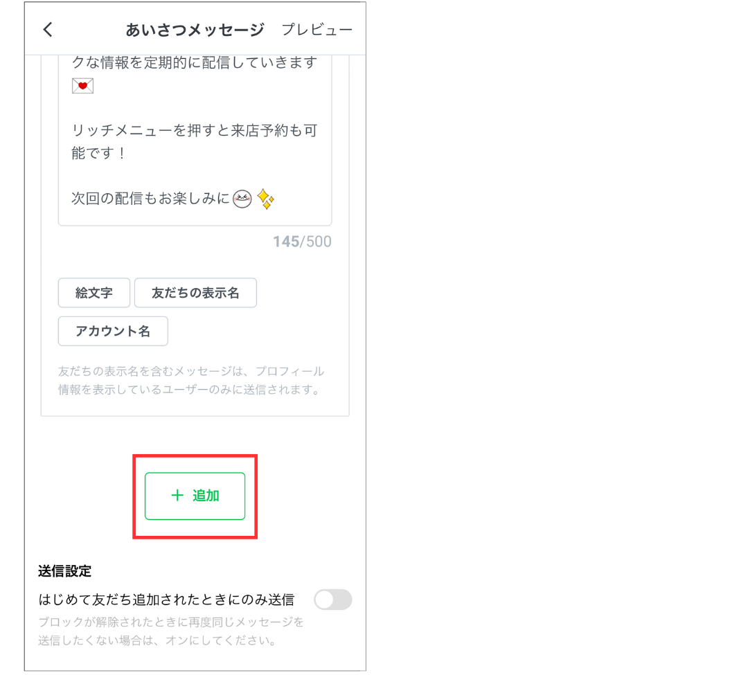 ※あいさつメッセージは、最大5個まで追加することが可能です。