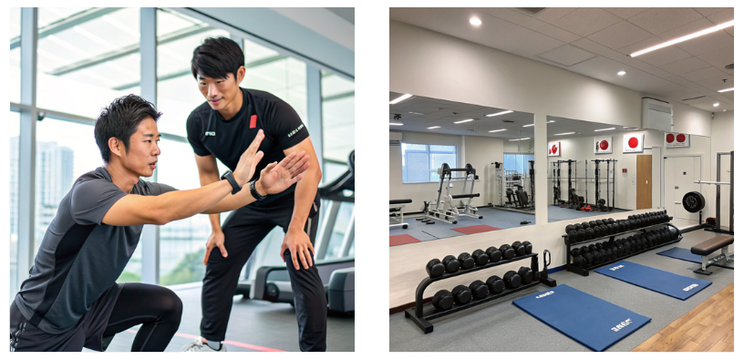 画像: トレーニング中のジムの雰囲気や、広々とした設備の写真。