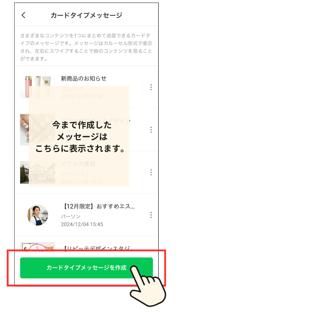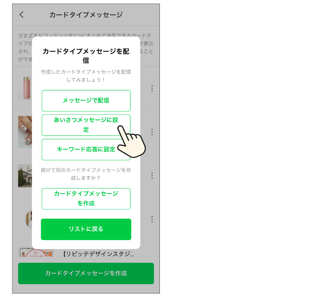⑨カードタイプメッセージの作成後は、実際にメッセージで配信を行いましょう