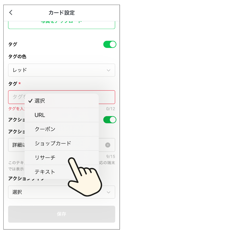 ⑦タグを設定される場合は、タグ毎の遷移先を選択