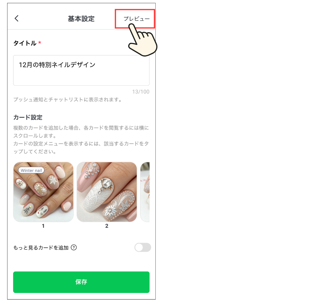 ⑧完成したカードをプレビューで確認し、問題がなければ配信を実行